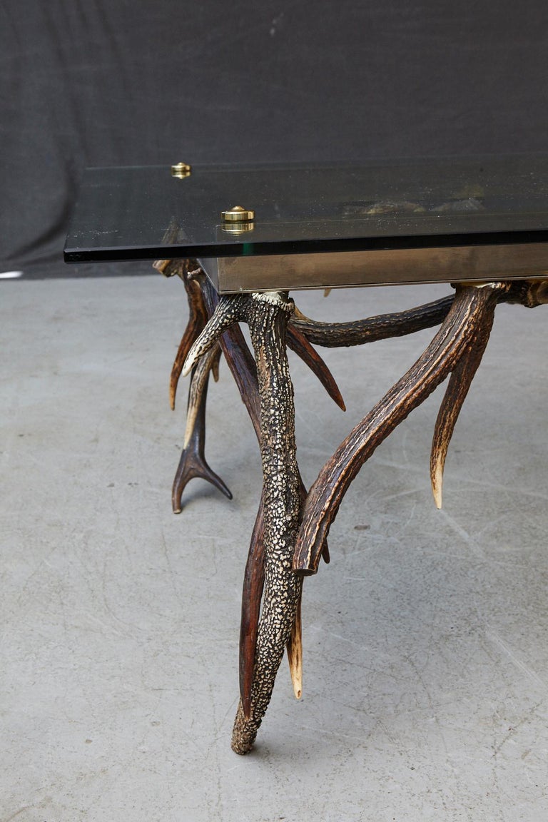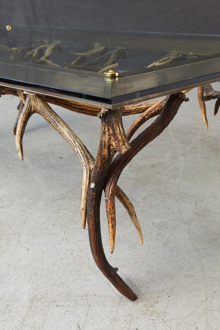 Antler Coffee Table For Sale at 1stdibs from a.1stdibscdn.com We have some standard moose antler coffee tables with either pencil polished glass, frosted and etched glass, or a layered edge glass. This design allows you to see the natural beauty of the antler and wood slabs. None of the points at the top of the table are cut or shaved, this give the table a beautiful elegance. All shed antler are different, therefore no two pieces are the same. A centerpiece for your home worthy of attention. Each table is different as every antler is unique. Our other antler furniture includes dining tables, coffee tables, end tables, and desks made from deer, moose, and elk antler. It displays the beauty found in nature in it's purest form, bringing the comfort and mystery of nature into your home.